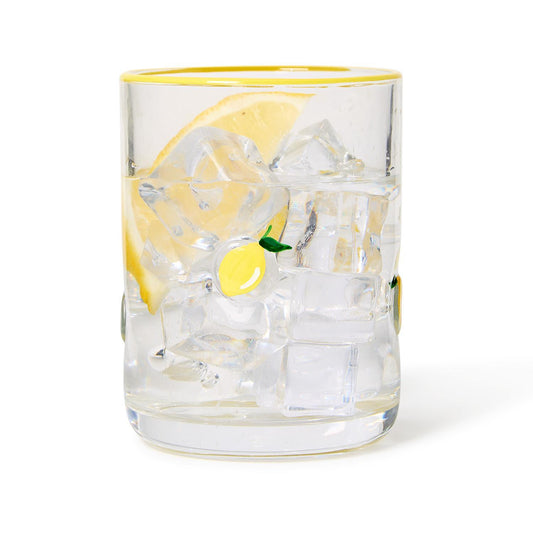 Lemon Double Old Fashion Hand-Painted Glass