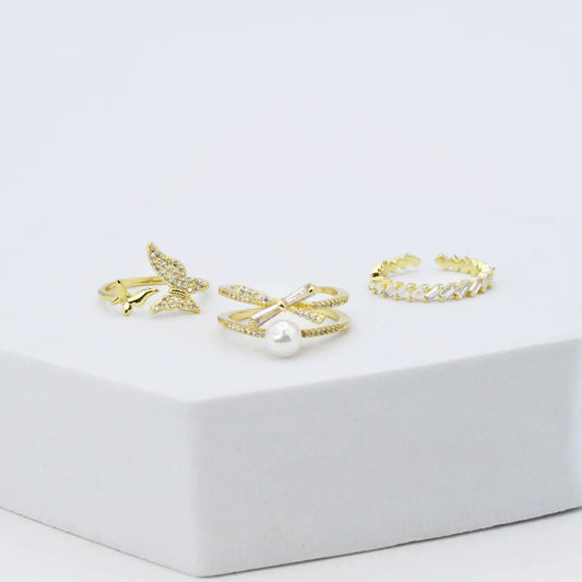 Butterfly Pearl Ring Set