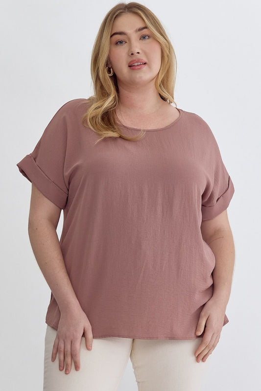 Sold outRolled Sleeve Scoop Neck Blouse