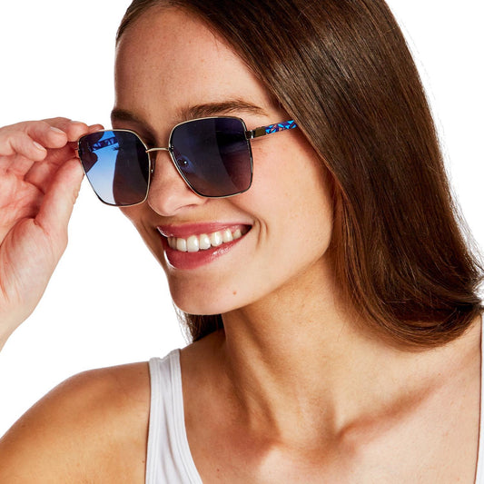 New View Metal Frame Sunglasses with Geometric Design Arms with Coordinating Lizard Print Hard Case