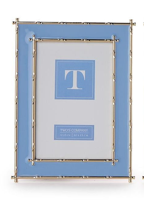 Showcase your cherished memories with the Gold Bamboo Edge 4" x 6" Metal Frame. Featuring an elegant bamboo inspired gold border and available in white, pink, or blue enamel finishes, this frame blends timeless style with modern charm. Perfect for desks, shelves, or mantel displays, it adds a touch of sophistication to any space.