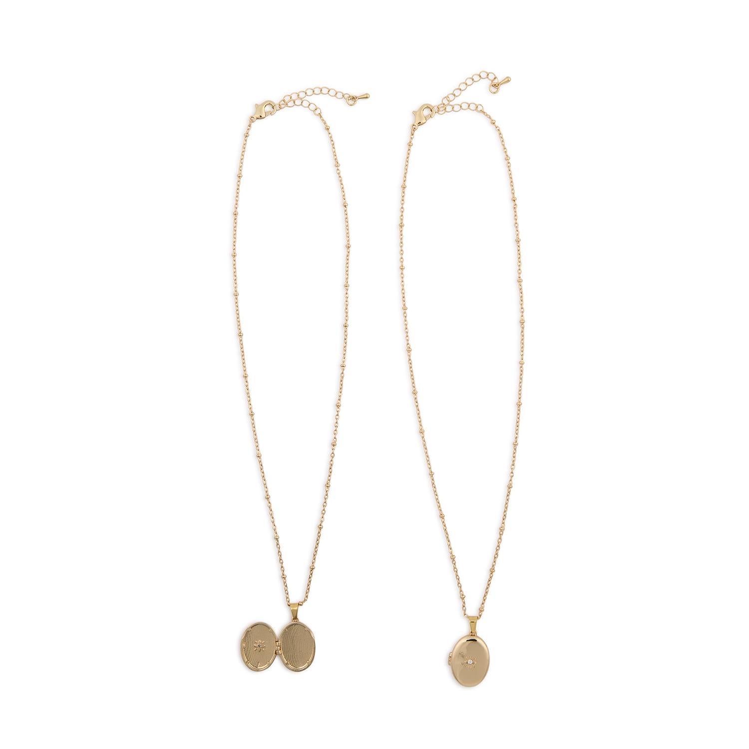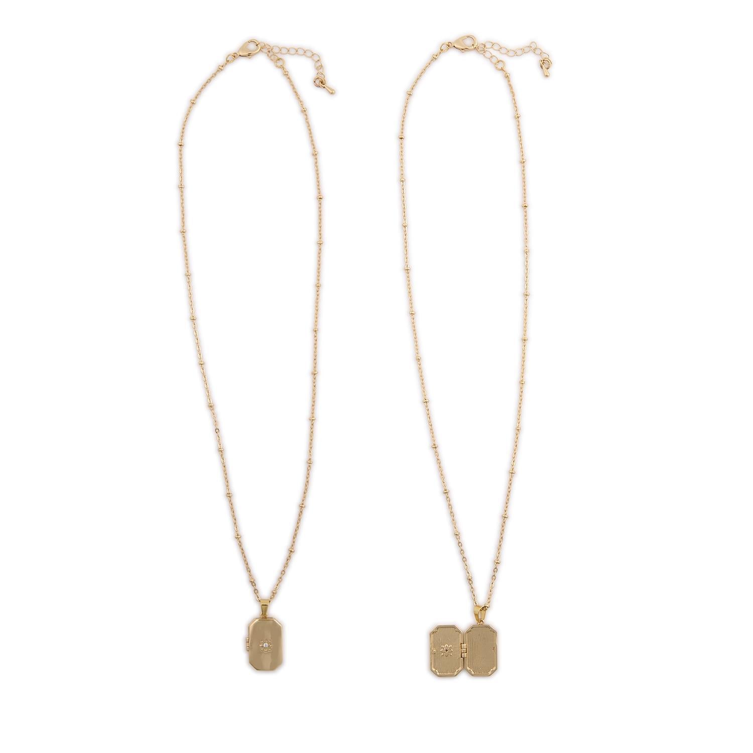 Elevate your look with the 2 Chic Keepsake Locket Necklace. This waterproof necklace, plated with 18 karat gold, offers three assorted designs to complement any style. Handcrafted with stainless steel, this 16" necklace includes a 2" extender for a customizable fit. Whether worn alone or layered, this piece adds a touch of elegance to any outfit.