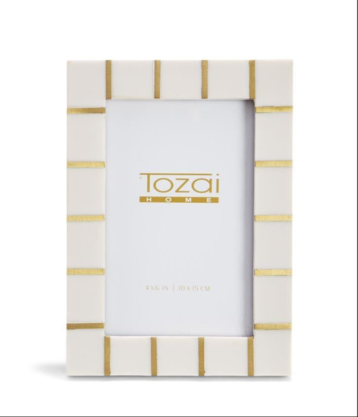 This timeless frame will hold your favorite memories in style forever. Crafted in resin with gold metal finishes this is a beautiful frame that can fit into almost any environment.