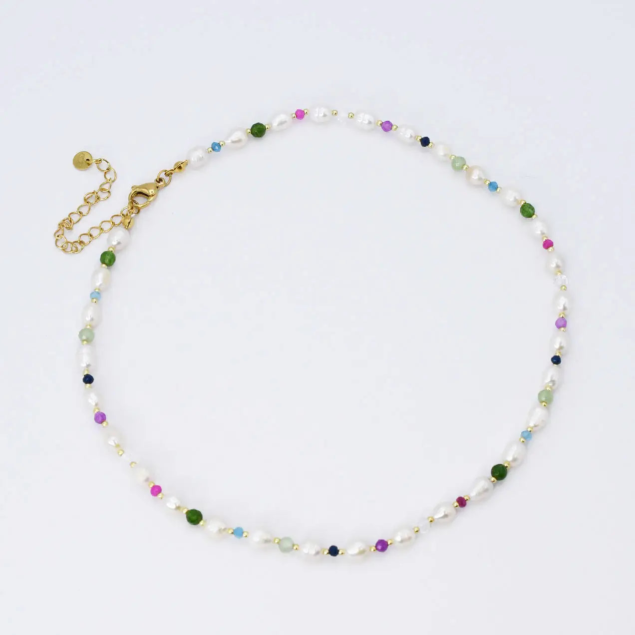 Our Pearl Girl Gemstone necklace is a standout piece from the Treasure Jewels Inc. collection. Crafted by skilled Colombian artisans, many of whom are single mothers, this piece is deeply rooted in the vibrant culture of Colombia and South America. Inspired by the intricate patterns of the Wayuu weavers and traditional seed beading techniques of the indigenous Embera tribe, it also incorporates alambrismo techniques, This necklace is a testament to our commitment to preserve traditional artforms and create an economic impact for our community of artisans.