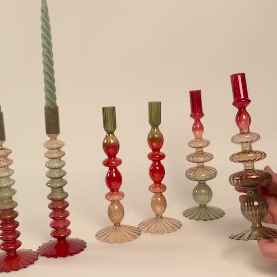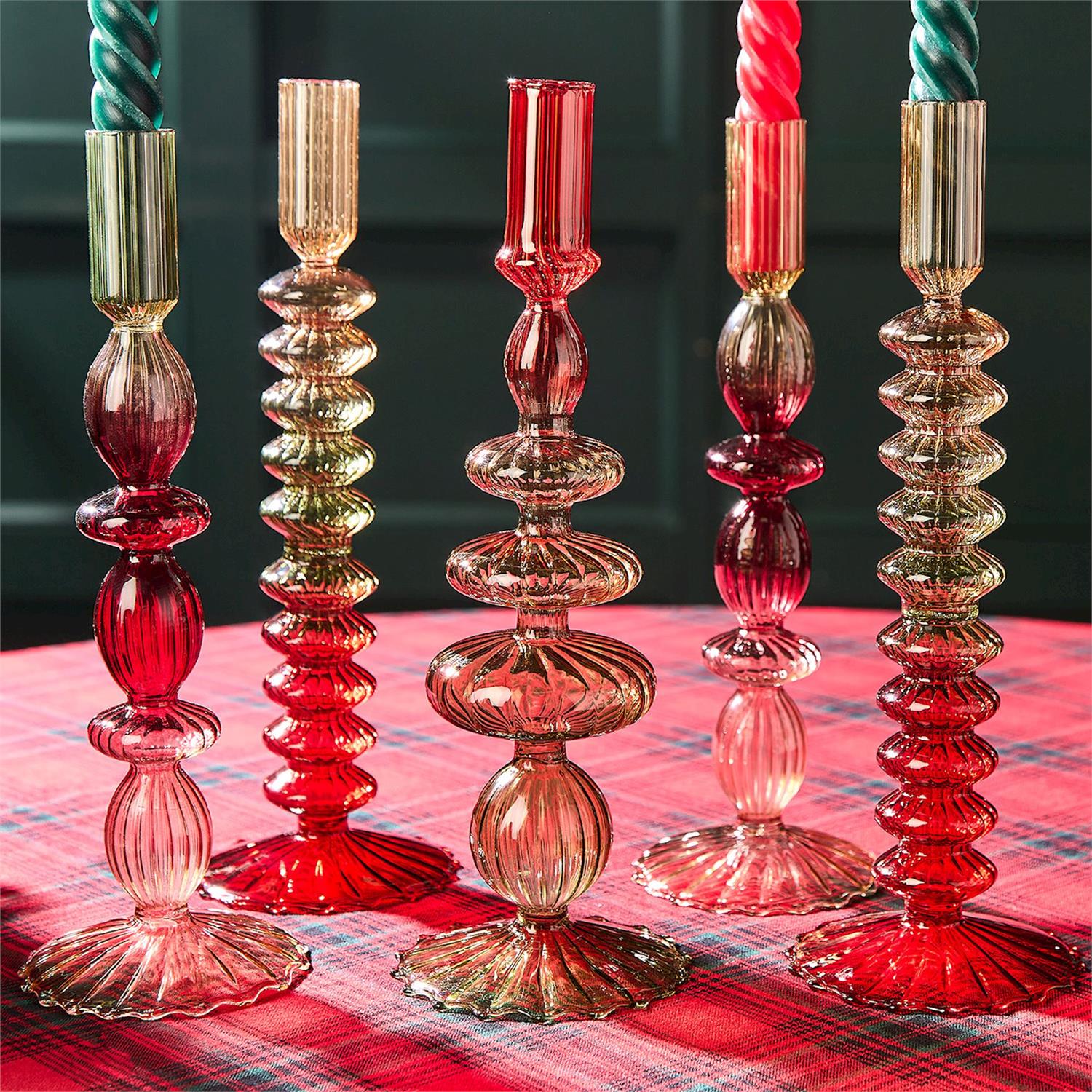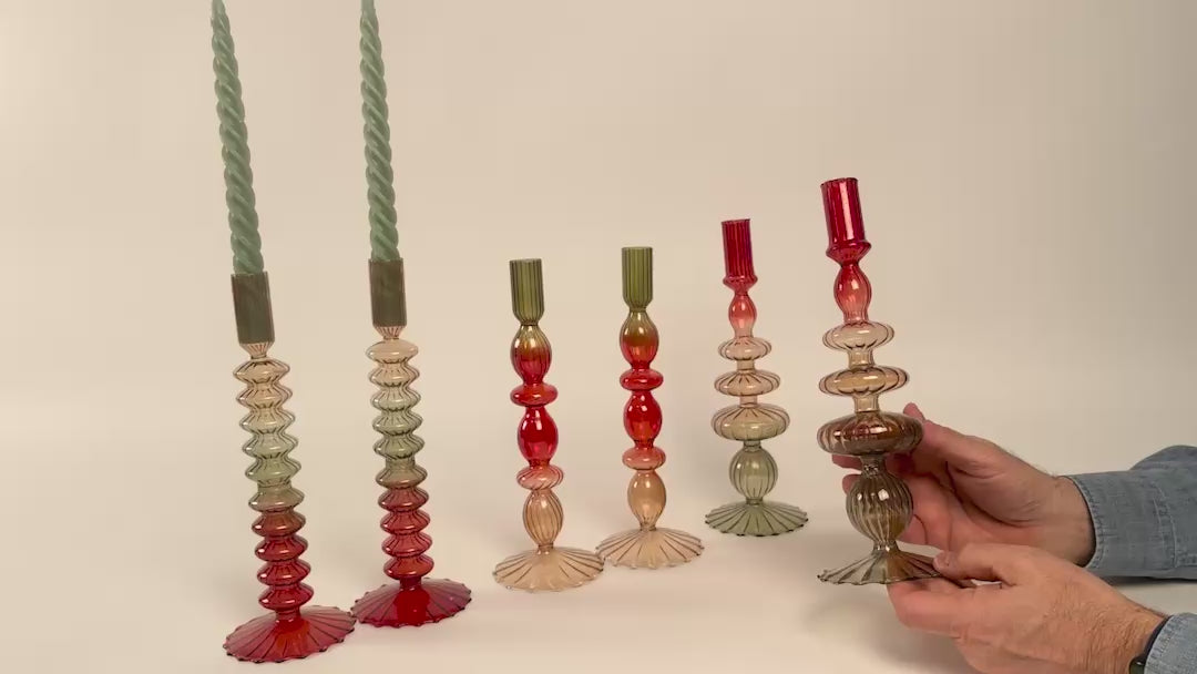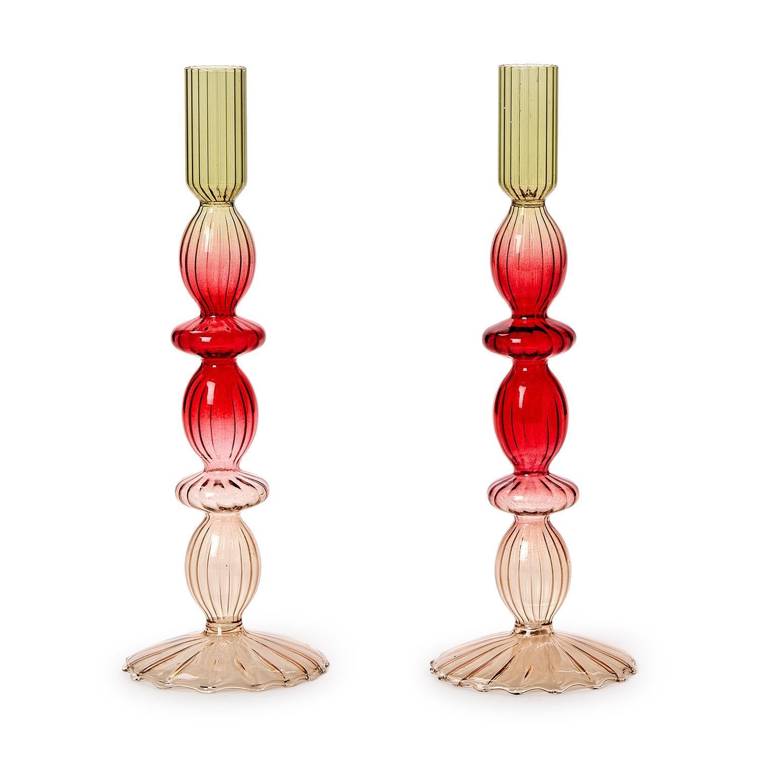 Set of 2 Holiday Ombre Hand-Blown Glass Candlesticks