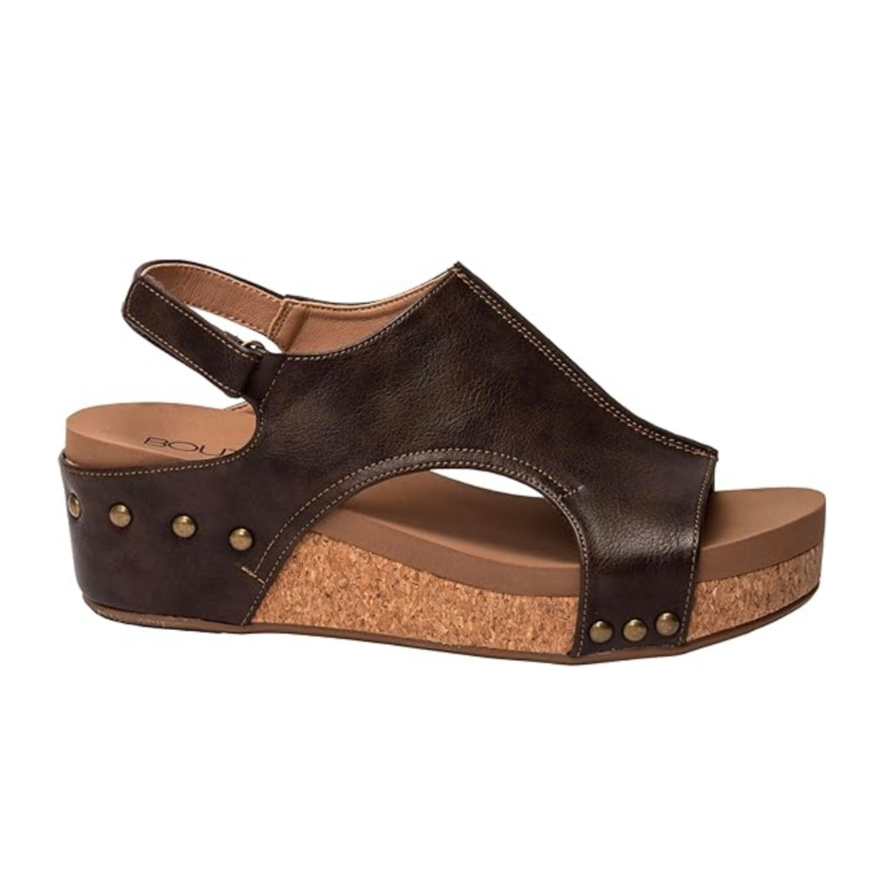 Elevate your style with Corkys Volta II Wedge Sandals. The insole is a soft and flexible material that conforms to your foot and provides cushioning and support. The cork wedge adds some height and elegance, while the open toe lets your toes breathe. Perfect for any occasion, these sandals are sure to be your new go-to choice.