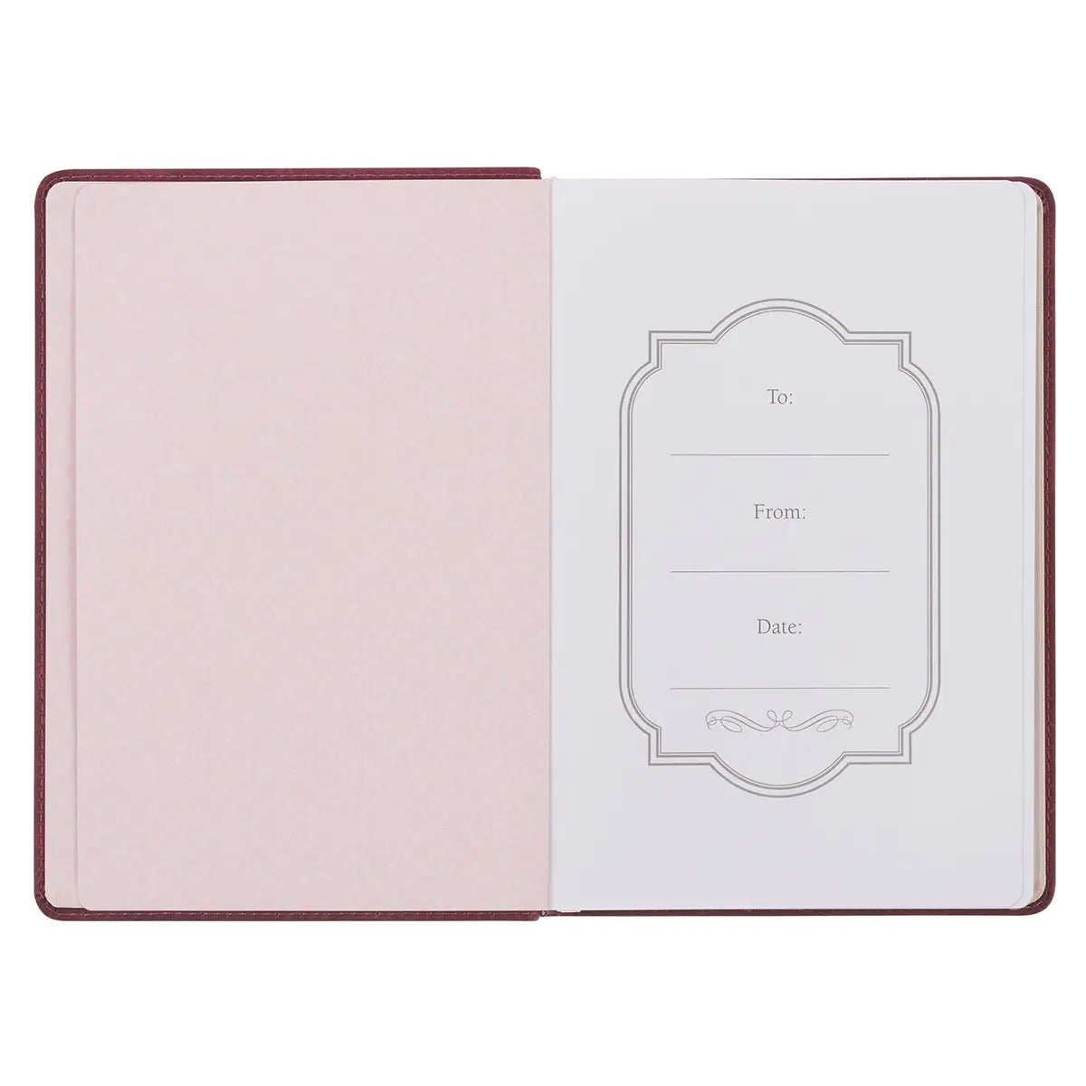 With the Things Are Possible Burgundy Faux Leather Classic Journal, you can reflect on Scripture as you write down your thoughts, prayers, and dreams. Let its uplifting message inspire peace and purpose with every page you fill.